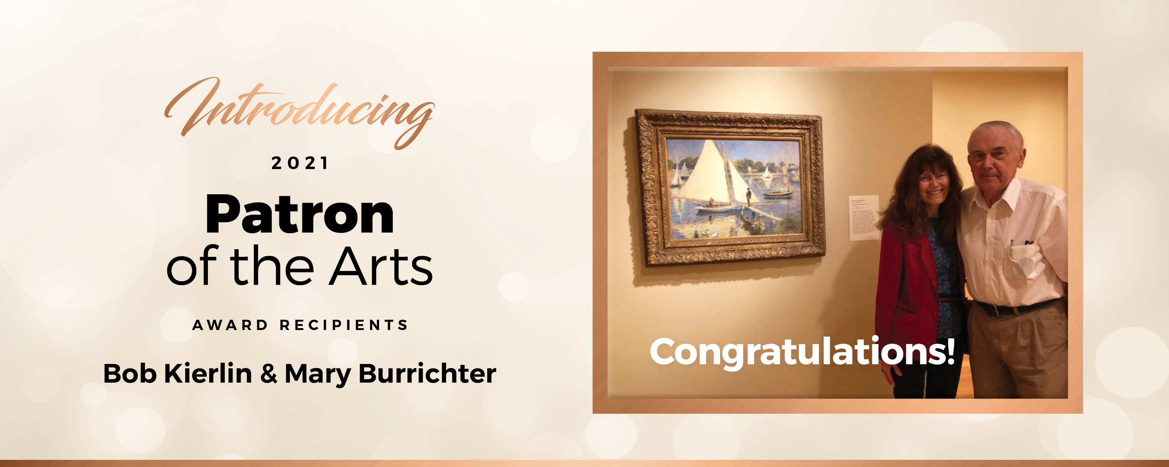 Ashley for the Arts to Award Bob Kierlin and Mary Burrichter the 2021 “Patron of the Arts”