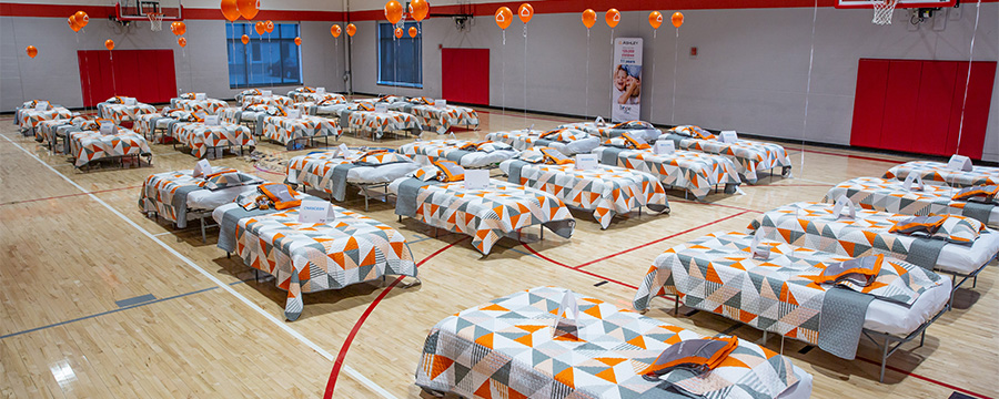 ARCADIA, Wis. – On Wednesday, April 27th, Ashley, the largest retail furniture store brand in North America, partnered with the Boys and Girls Club of Greater La Crosse and the University of Wisconsin-La Crosse Men’s Basketball Team, to provide 30 local children a new bed. The event provided the recipients and their families a fun night of carnival games, food, and prizes, followed by a surprise bed reveal. This is the organization’s first bed donation event in the La Crosse area.