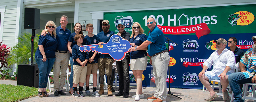 Johnny Morris, founder and CEO of Bass Pro Shops and noted conservationist, launched the 100 Homes Challenge and committed to fund 25% of the cost of the next 100 Helping a Hero homes. Helping a Hero invites the public to join the Johnny Morris 100 Homes Challenge by making a donation, however large or small, to insure our most severely wounded warriors receive an adapted home to restore their freedom and independence inside their home.