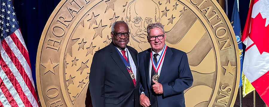 Photo: Supreme Court Justice and Horatio Alger Member, Clarence Thomas, presents Ron Wanek with the Horatio Alger Association medallion.