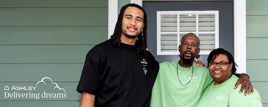 In addition to the grand prize, five runners-up received an exclusive Delivering Dreams gift pack including Texans merchandise, tickets to a home game, and $500 in Ashley in-store credit. Ashley has also partnered with The C.J. Stroud Foundation, lead by C.J.’s mom, Kimberly Stroud, to bless additional families in need with furniture donations valued at $50,000.